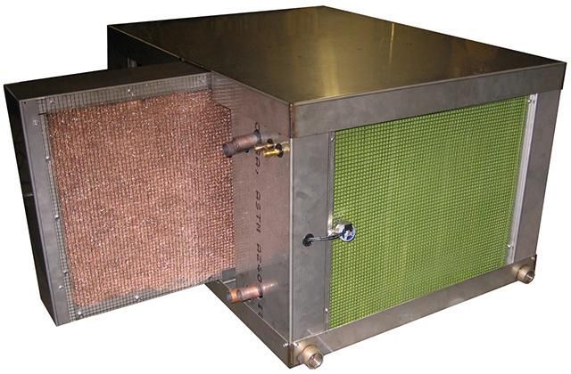 The Compact Marine Load Bank provides the advantage of compact size and low-temperature operation, making it ideal for indoor installation well within the interior of a ship. Unlike air-cooled load banks, which must exhaust a very high volume of hot air to the outdoors and, as a result, are limited when installed indoors, a water-cooled load bank only needs two pipes (water in and water out). It produces no significant heat radiation to the interior space. In many cases, this will allow installation nearer to the power source or in otherwise unused space. Manufactured with a stainless steel shell and using cupro-nickel tubing joined with manifolds, water-cooled marine load banks are suitable for use with fresh or salt water.