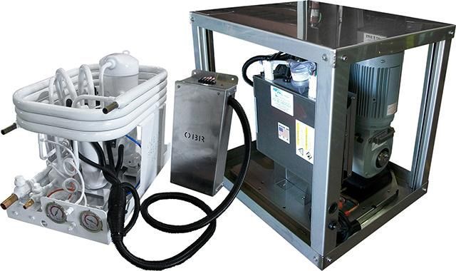 The Ocean Breeze Engine-driven system is made with the highest quality material for marine, recreation, commercial, or industrial use. Systems can be ordered either engine-driven with a water-cooled cupro-nickel condenser or air-cooled. For dual circuit cold plate applications, systems can be ordered to be used with AC electrical systems combined with either or both air or water-cooled condensers. Systems are sold with standard installation kits or can be custom-ordered to specific needs. The above system can be used as either a refrigeration, freezer, chiller tank or blast freezer. Stainless steel boxes can be ordered for all the above systems.
