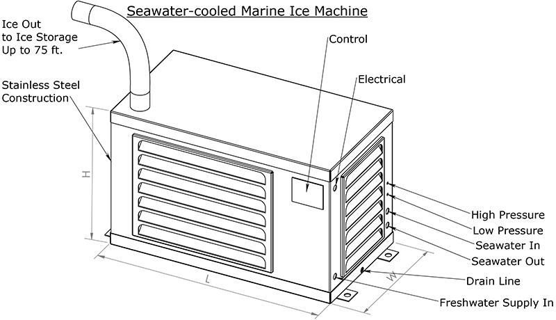 Our ice machines range from 500 lbs/24 hrs to 2,000 lbs/24 hrs with remote ice delivery through tubing. Available for self-contained or split system water-cooled or air-cooled condensers.